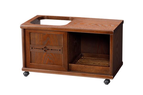 W597×D300×H350mm ポット間口24cm角 ニレ突板貼り ウレタン塗装 可動棚1 お盆1